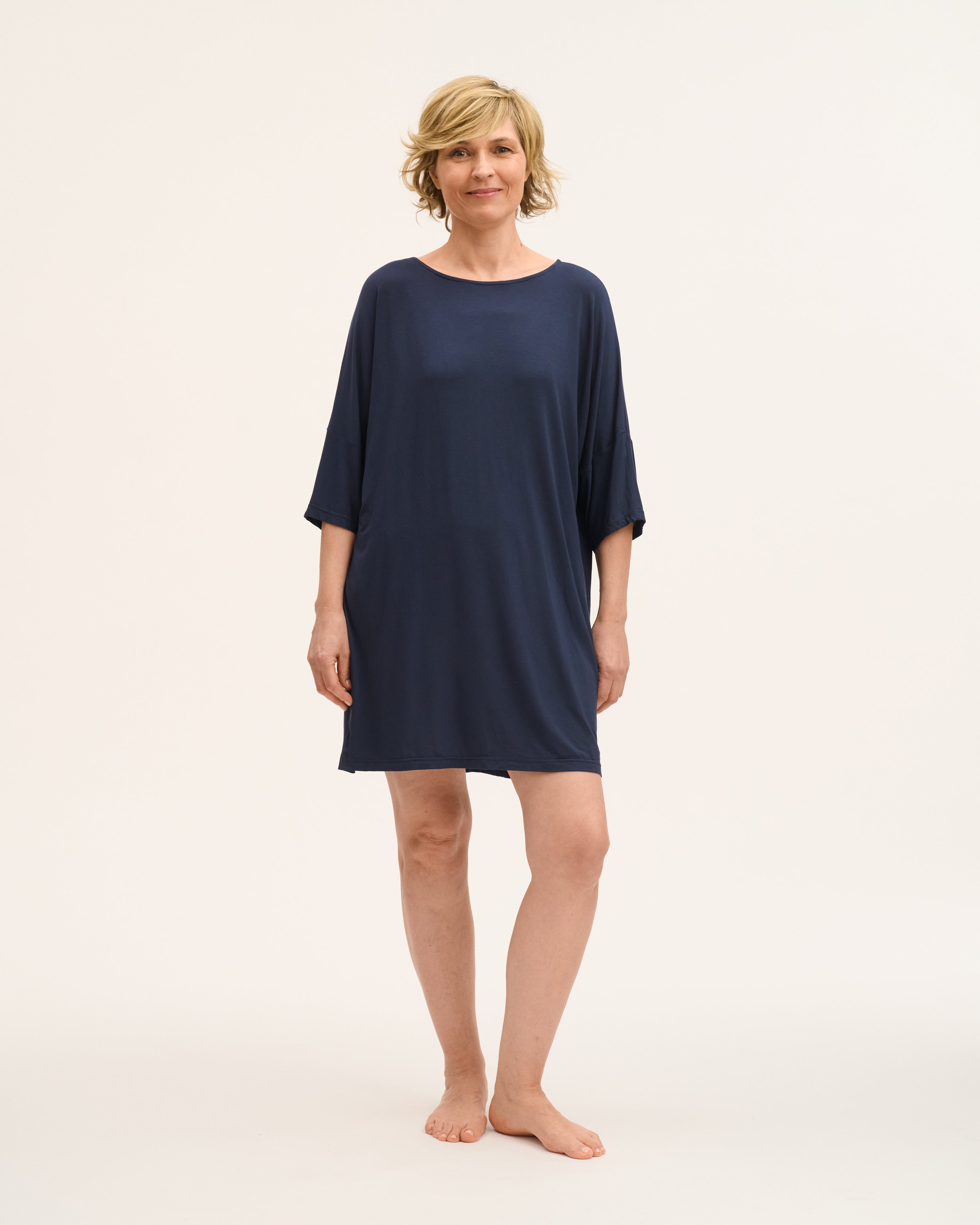 Weiche, atmungsaktive Stoffe wie EcoVero™ Jersey und Micromodal. Leicht, angenehm auf der Haut, regulieren die Körpertemperatur. In zeitlosen Farben, die visuelle Ruhe schenken.